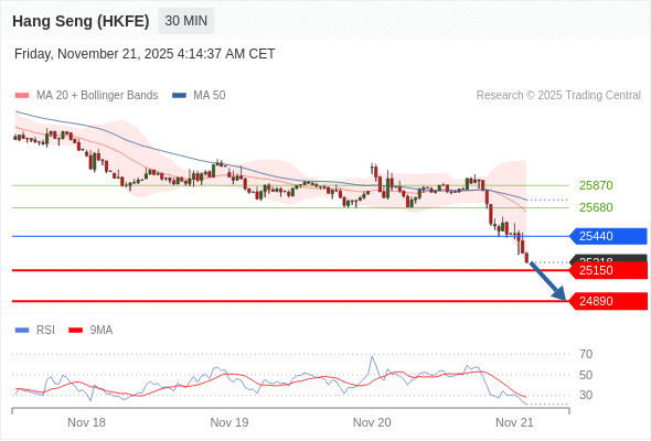 交易策略: 在 25440 之下,看跌,目标价位为 25150 ,然后为 24890 。