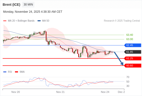 在 62.45 之下,看跌,目标价位为 61.25 ,然后为 60.60 。