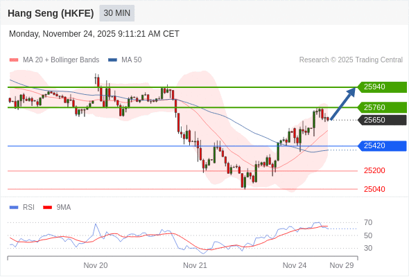在 25420 之上,看涨,目标价位为 25760 ,然后为 25940 。
