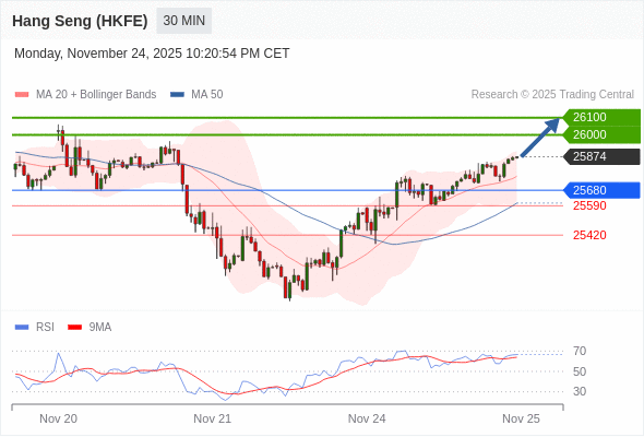 在 25680 之上,看涨,目标价位为 26000 ,然后为 26100 。