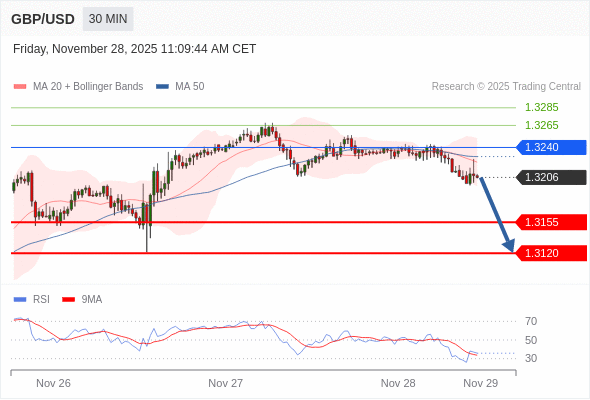 在 1.3240 之下,看跌,目标价位为 1.3155 ,然后为 1.3120 。