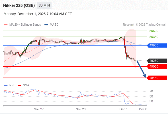 交易策略: 在 49950 之下,看跌,目标价位为 49000 ,然后为 48480 。