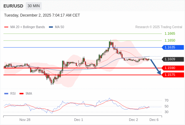 交易策略: 在 1.1635 之下,看跌,目标价位为 1.1590 ,然后为 1.1575 。