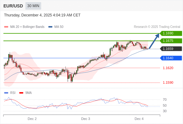 在 1.1640 之上,看涨,目标价位为 1.1675 ,然后为 1.1690 。
