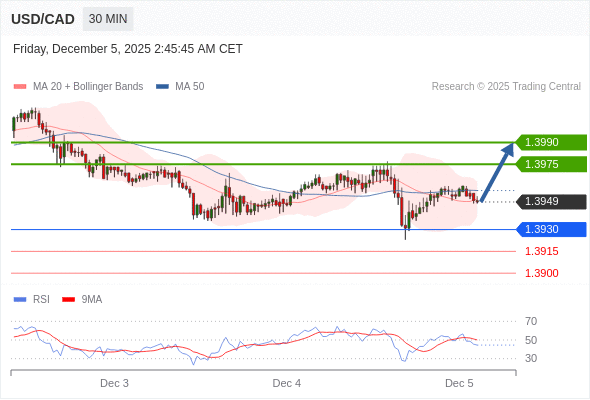 在 1.3930 之上,看涨,目标价位为 1.3975 ,然后为 1.3990 。