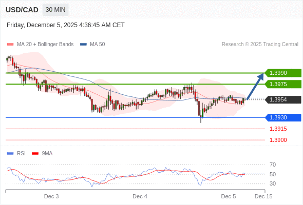 在 1.3930 之上,看涨,目标价位为 1.3975 ,然后为 1.3990 。