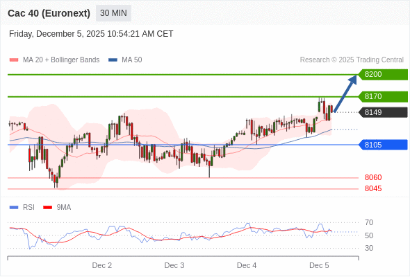 在 8105 之上,看涨,目标价位为 8170 ,然后为 8200 。