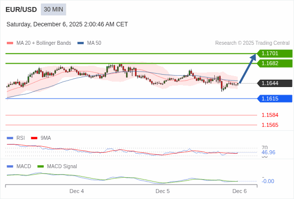 欧元/美元 当日内 : 有上涨的可能,目标价位定在 1.1701 。