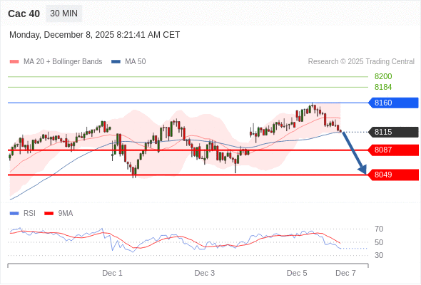 在 8160 之下,看跌,目标价位为 8087 ,然后为 8049 。