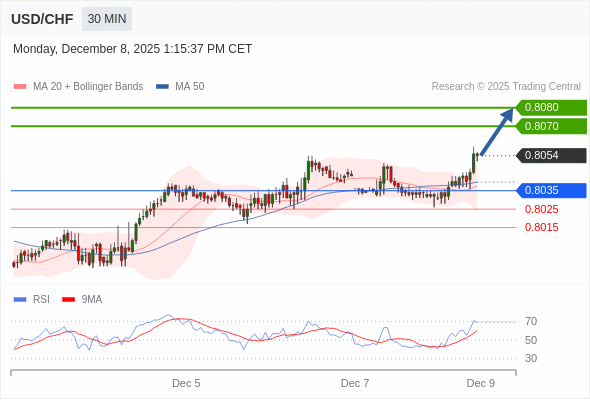 在 0.8035 之上,看涨,目标价位为 0.8070 ,然后为 0.8080 。