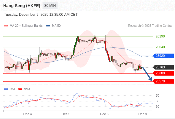 香港恒生指数期货 当日内: 短期关键阻力位在25920。