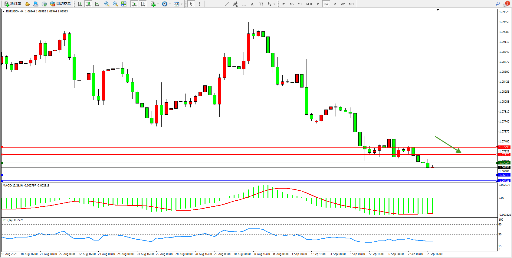 欧元兑美元维持1.06953附近震荡,欧元区第二季度GDP年率终值 0.5%,预期0.60%,前值0.60%。欧元区经济在第二季度几乎没有增长,因为新的数据显示出口表现低迷,迫使该地区的总体增长数字向下修正。