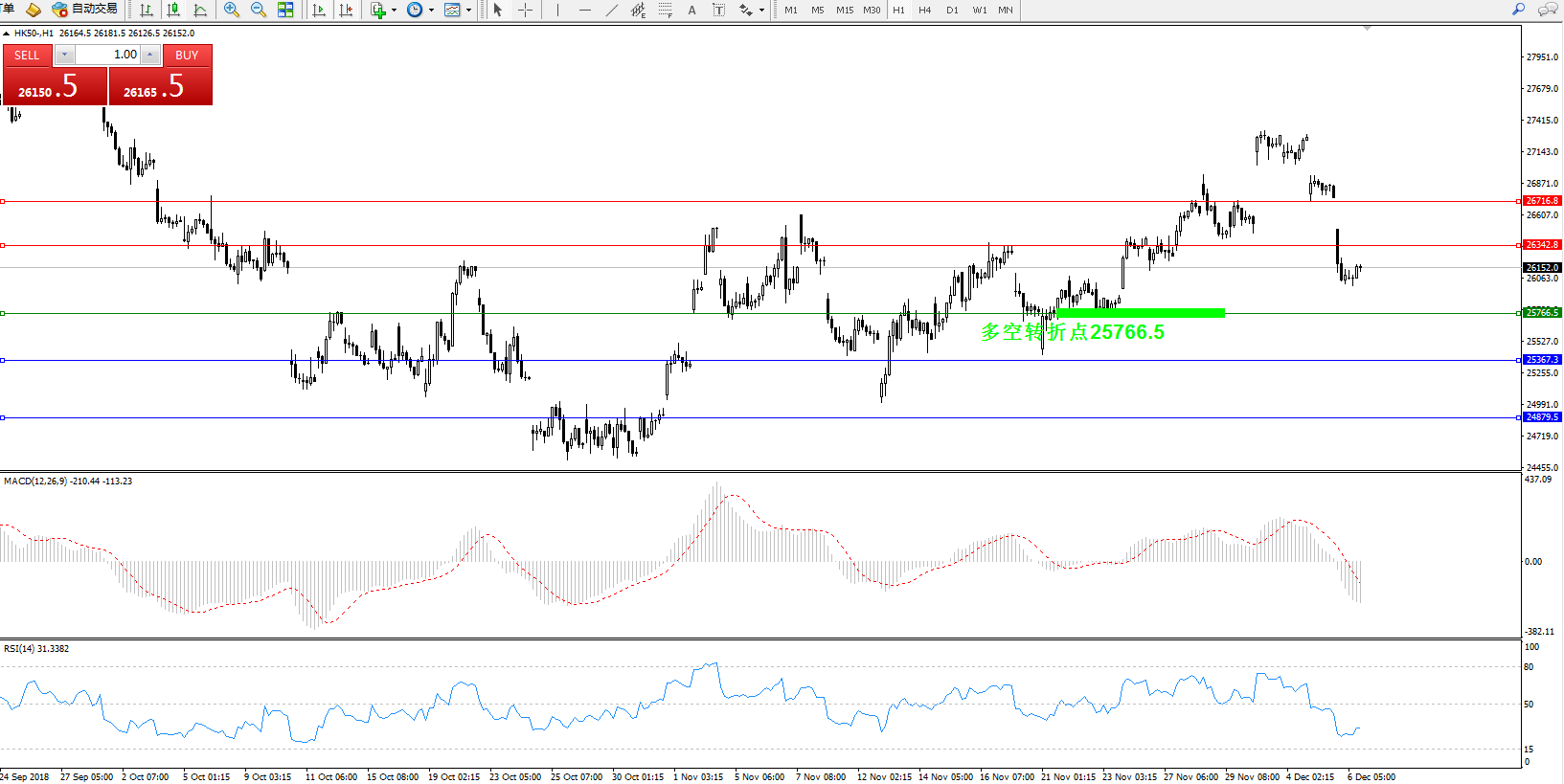 恒指HK50 ——1小时K线图显示: