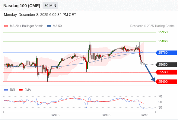 在 25760 之下,看跌,目标价位为 25580 ,然后为 25490 。
